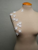 Пришивные аппликации Цветы – это небольшие кружевные элементы для создания объемных форм. 3D фрагменты отлично сочетаются с аппликациями и широко используются в костюмах для бальных танцев и художественной гимнастики, подходят для сценических костюмов, а также свадебной и вечерней моды. Представлены в широкой палитре расцветок и подходят для окрашивания различными красками.