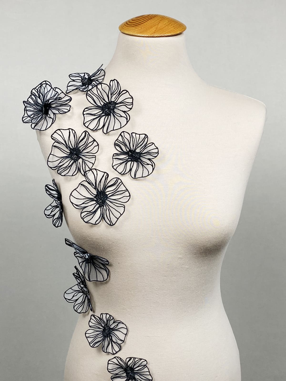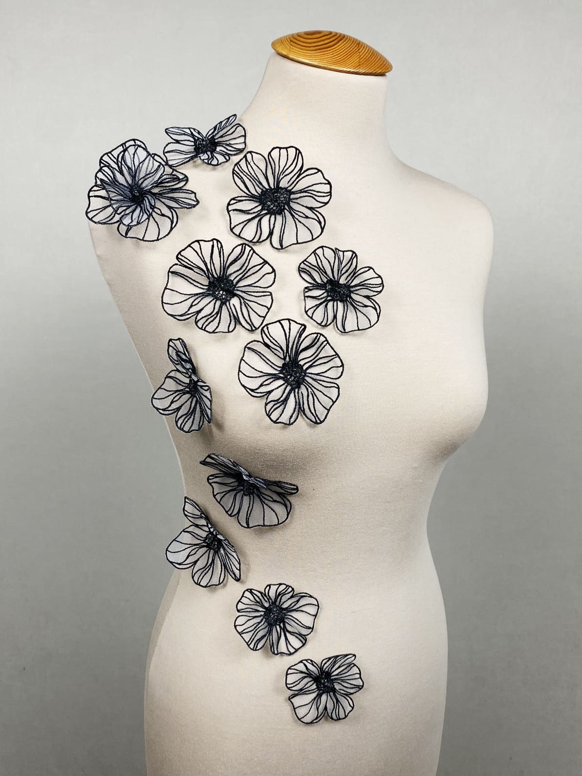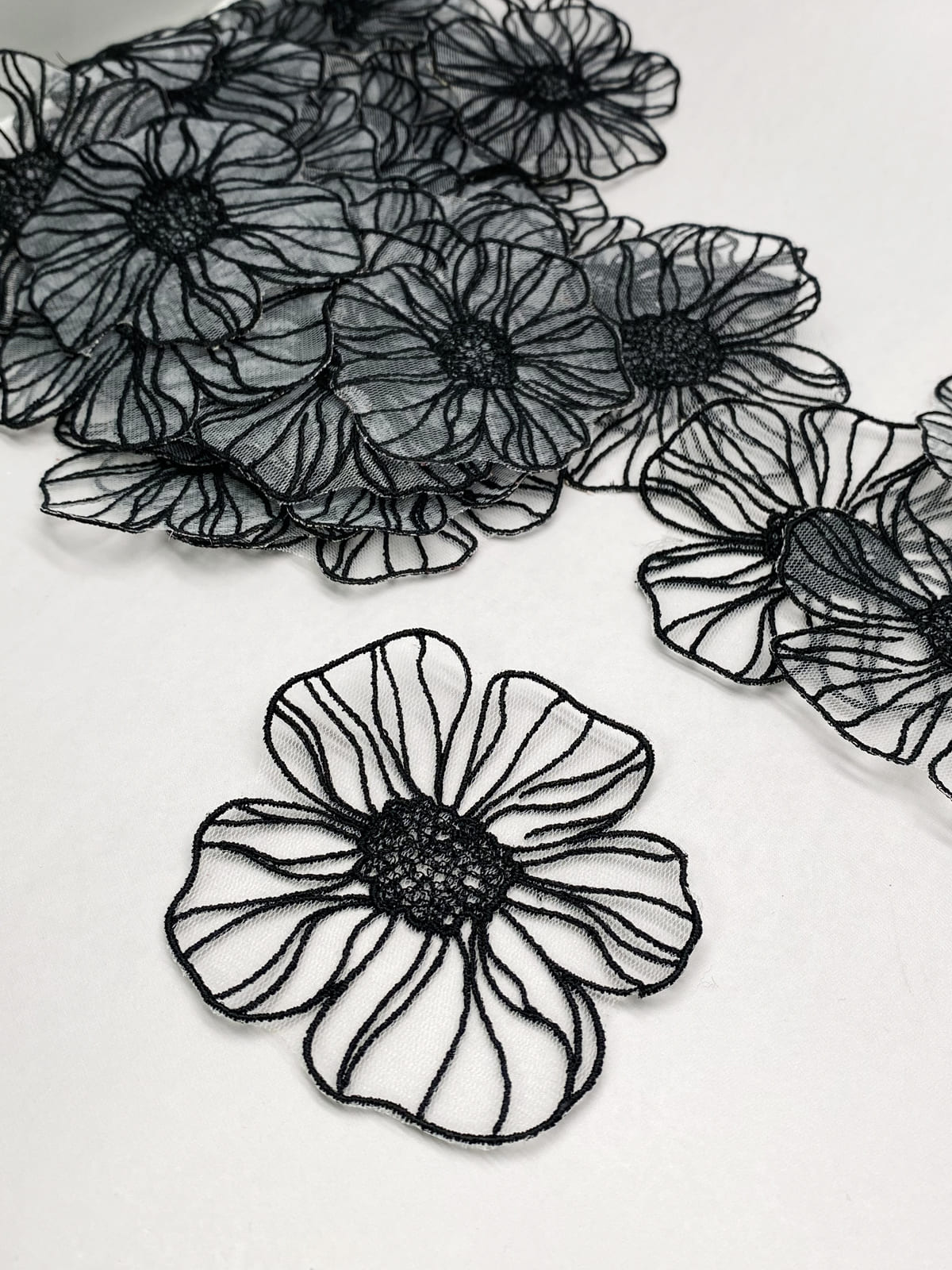 Пришивные аппликации 3D цветы – это небольшие кружевные элементы для создания объемных форм. 3D фрагменты отлично сочетаются с аппликациями и широко используются в костюмах для бальных танцев и художественной гимнастики, подходят для сценических костюмов, а также свадебной и вечерней моды. Представлены в широкой палитре расцветок и подходят для окрашивания различными красками.