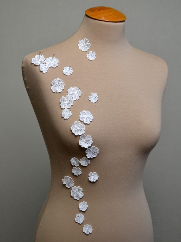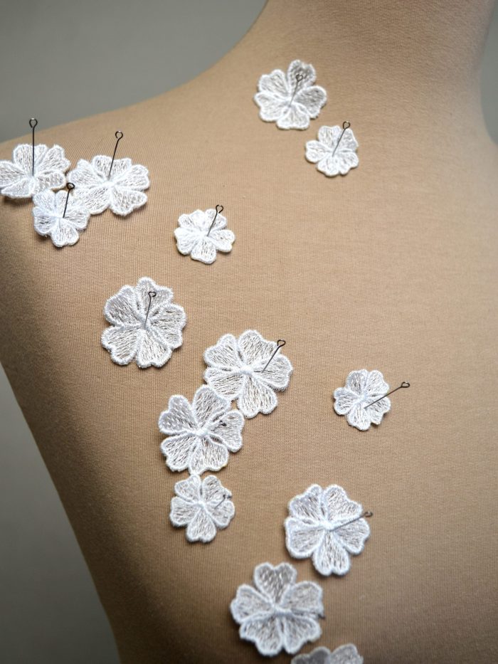 Пришивные аппликации 3D цветы – это небольшие кружевные элементы для создания объемных форм. 3D фрагменты отлично сочетаются с аппликациями и широко используются в костюмах для бальных танцев и художественной гимнастики, подходят для сценических костюмов, а также свадебной и вечерней моды. Представлены в широкой палитре расцветок и подходят для окрашивания различными красками.