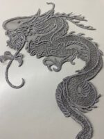 Кружевная аппликация «Дракон», вышита на сетке и вырезана по контуру.