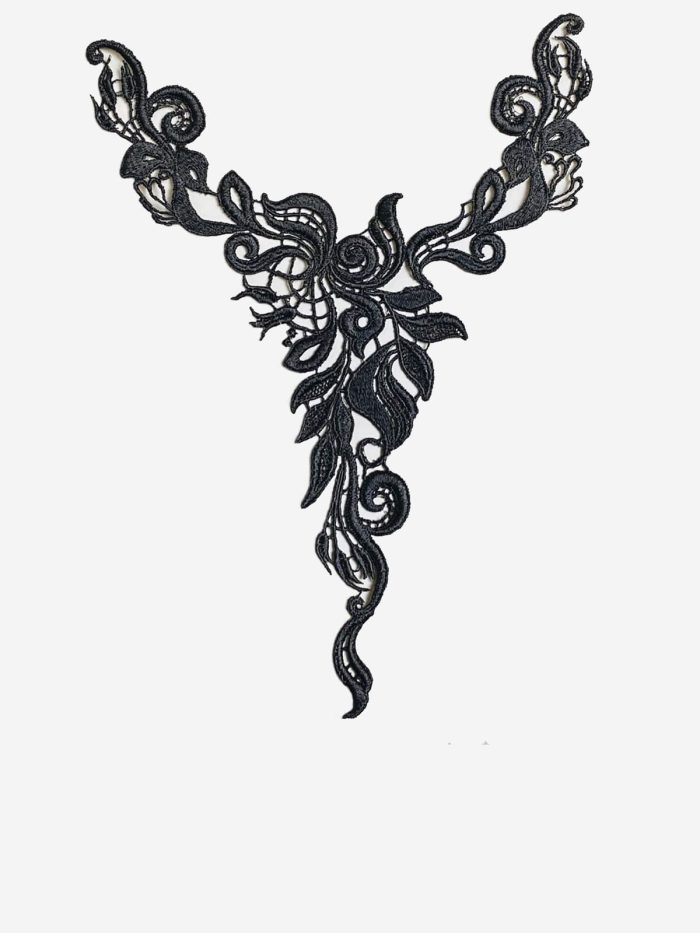 Кружевная вставка — это кружевная аппликация с ярко выраженной фактурой для декорирования декольте. Такие кружевные вставки часто используют для танцевальных и сценических костюмов, а также свадебных и вечерних платьев. Благодаря обширной цветовой гамме, многообразию форм и размеров кружевные мотивы очень удобны в работе.