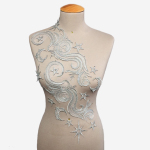 Пришивные аппликации (комплект) — это набор сочетающихся между собой кружевных элементов, которые схожи по фактуре и дизайну. Аппликации в комплекте вырезаны по контуру, обладают изящными формами и детализированными узорами. Хорошо подходят для танцевальных, спортивных и сценических костюмов, а также для вечерних и свадебных платьев. Представлены в широкой палитре расцветок и подходят для окрашивания красками.