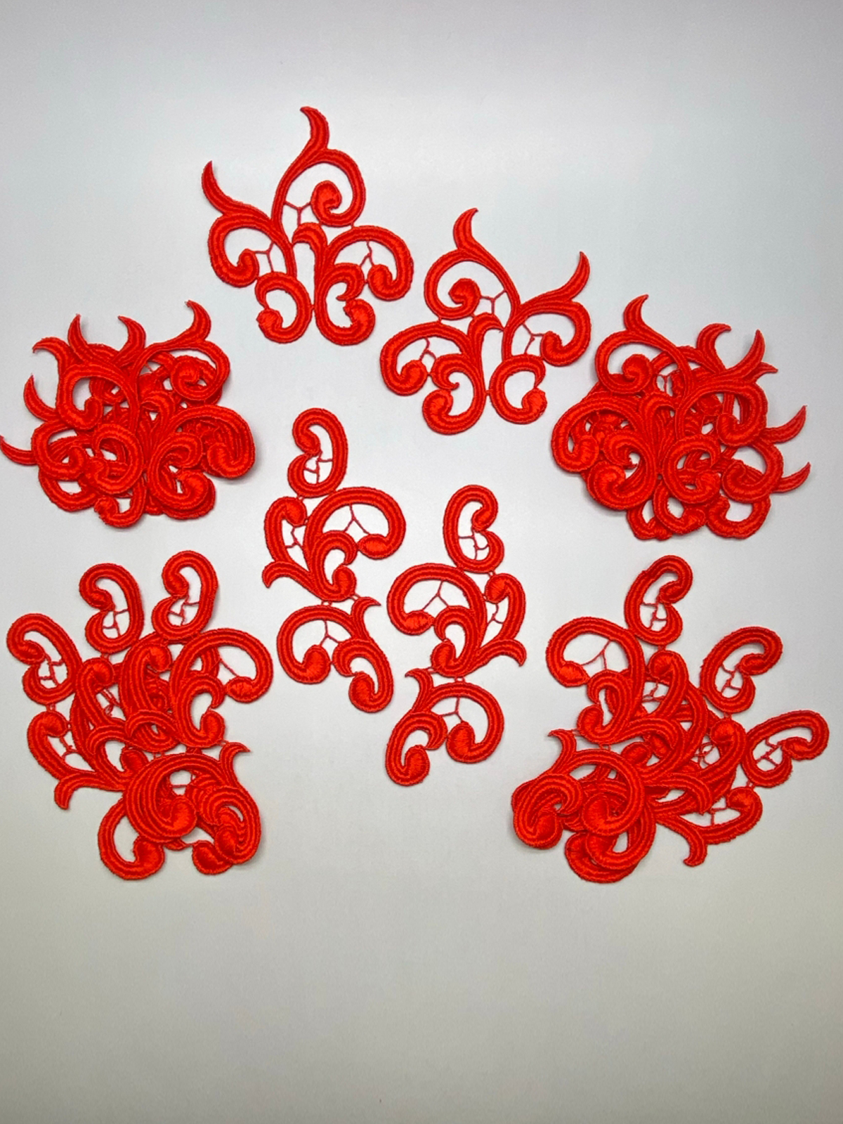 Пришивные лейсы (комплект) – это набор сочетающихся между собой кружевных элементов схожих по фактуре и дизайну. Такие кружевные фрагменты часто используют для танцевальных и сценических костюмов, а также свадебных и вечерних платьев. Благодаря обширной цветовой гамме, многообразию форм и размеров кружевные мотивы очень удобны в работе.